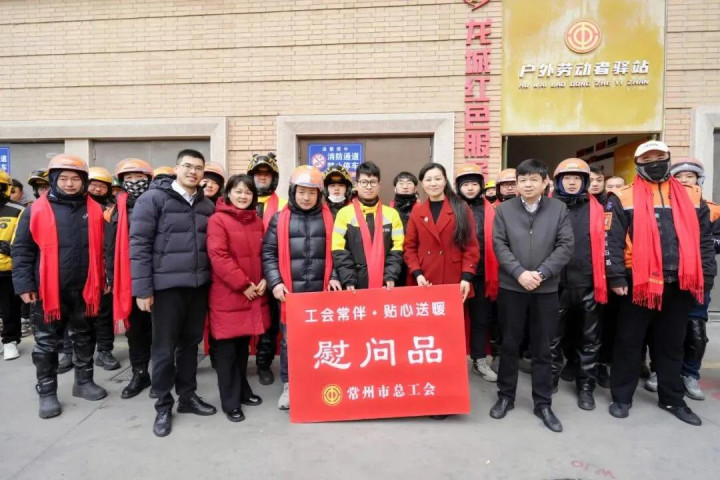 常州市总工会副主席王丹丹,副主席徐亚明一行走访慰问了新北区环球港工会驿站户外劳动者、新北区新就业形态劳动者服务中心新业态工作人员、困难劳模、困难职工和大观楼及止园建设项目建筑工地一线施工人员。