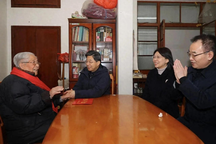 常州市总工会主席方国强,党组成员林正云一行首先慰问了常州市总工会原主席、党组书记、102岁高龄的初茂昌老领导。方国强与老领导及其家人亲切交谈,询问老领导的身体状况和家庭情况,为老领导系上象征喜庆与温暖的红围巾,代表市总工会送上慰问金,衷心祝愿老领导身体康健、福寿绵长。